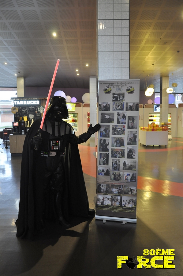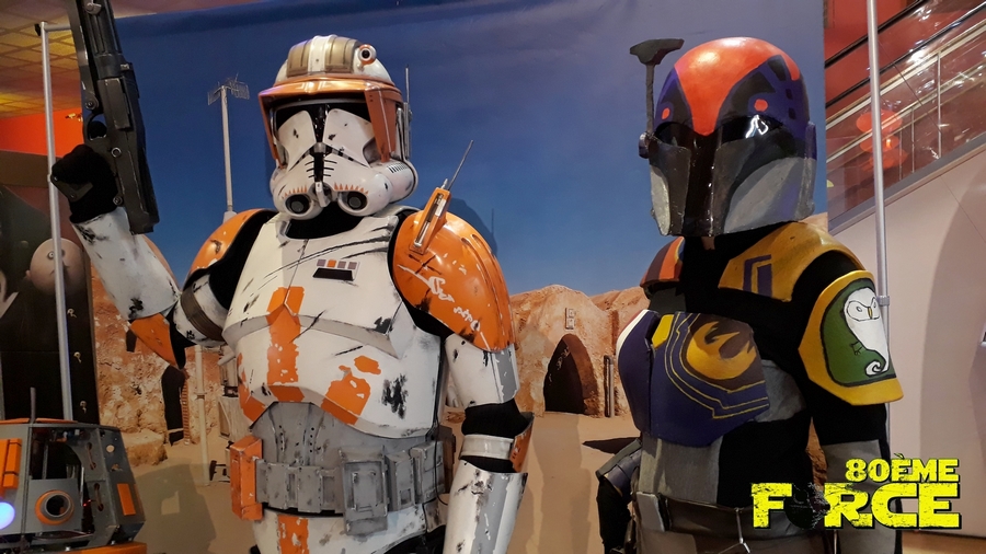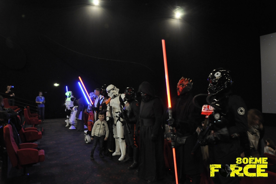 Cette année nous étions accompagnés de nos amis du Cartel d'Ord Mantel et des R2-Builders france. Des petites nouveautés cette année, nous avons exposés sur la parvis du cinéma la 2CV-X-wing d'une de nos membres. Cette voiture a fait son effet !! Nous avons en plus des sorties de salles, animé la pré-projection des films avec de petites sainettes avec nos amis du Cartel. Je pense que les gens ont apprécié ces petits moments "délires". Nos amis R2 n'étaient pas reste avec la venue de D-O le petit dernier de la saga. Quant au Cartel, eux , ont carrement installé un bivouac Jawa dans le hall et animé le hall avec leurs jeux.